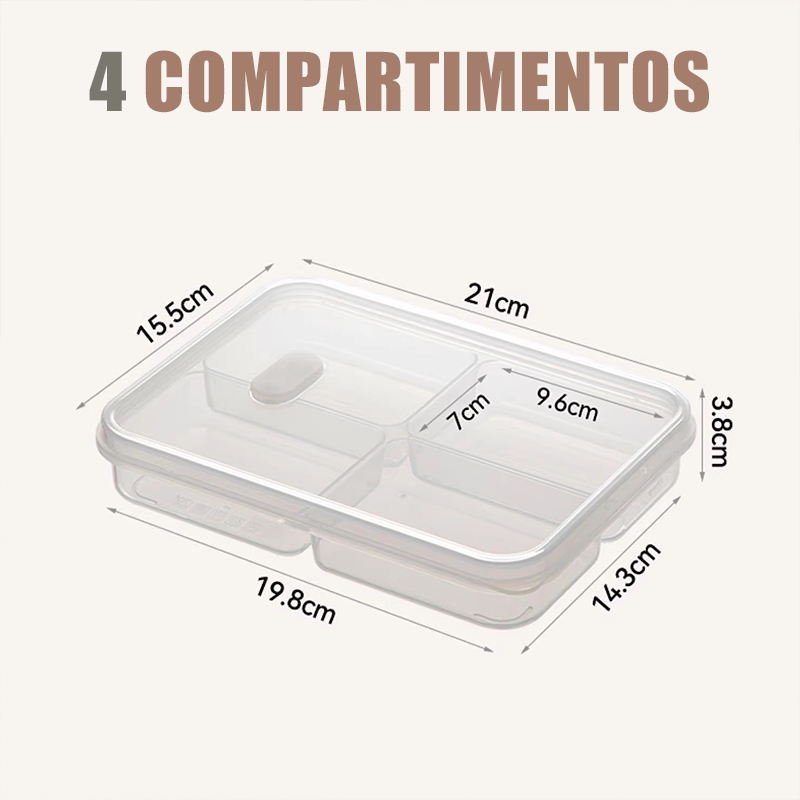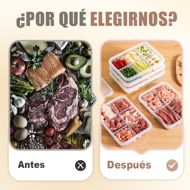DIVISIONES TRANSPARENTES: Mantén los ingredientes frescos y organizados gracias a las secciones divididas y transparentes. Guarda diferentes tipos de alimentos en un solo recipiente sin que se mezclen. Ahorra espacio en el refrigerador o despensa apilándolos o colocándolos de lado.