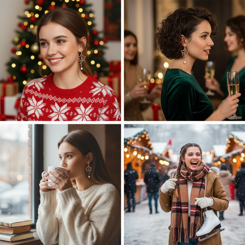 LÉGÈRETÉ ET CONFORT - Fabriquées principalement en résine légère, ces boucles d'oreilles sont conçues pour un port prolongé. Vous pouvez profiter des fêtes de fin d'année et des longues soirées en tout confort, sans aucune sensation de tiraillement ou de lourdeur sur vos lobes d'oreilles.
