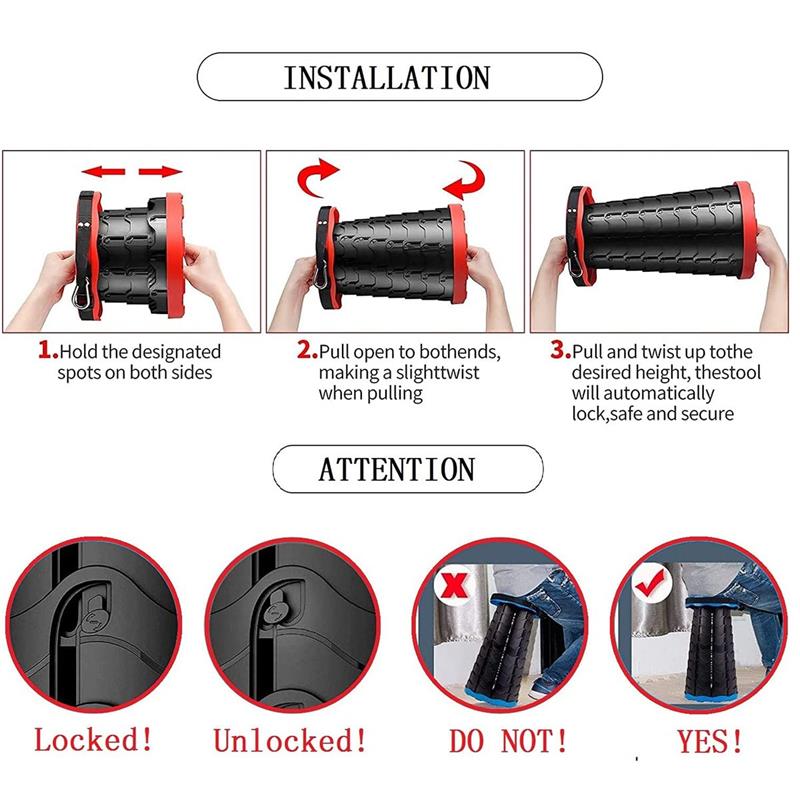 Convient aux enfants et aux adultes : Il n'est pas nécessaire d'acheter ces articles séparément pour des personnes de différentes tailles. La hauteur réglable de ce tabouret télescopique (2 -18 in) le rend adapté aux adultes comme aux enfants.