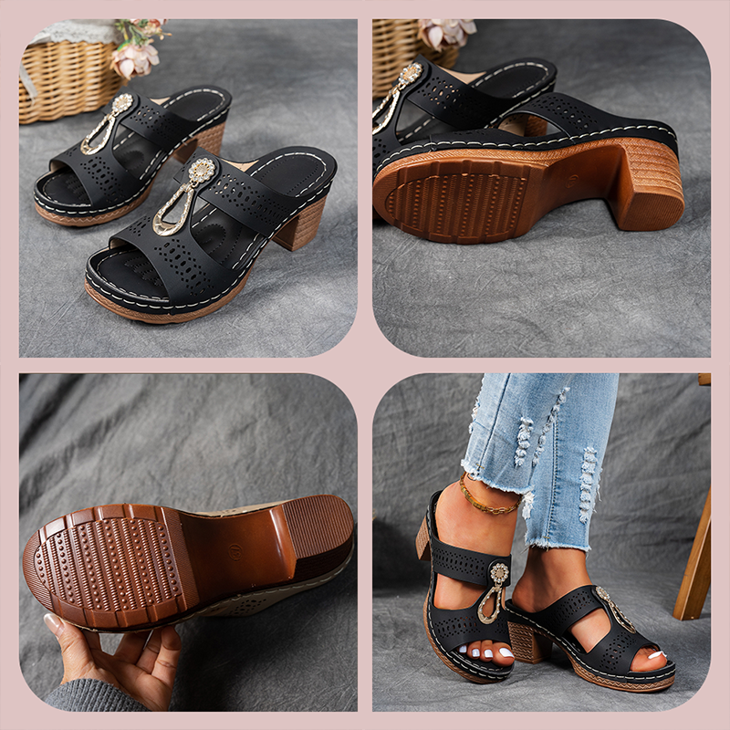Lieferumfang: 1× Pantoffeln mit Lochmuster und Blockabsatz