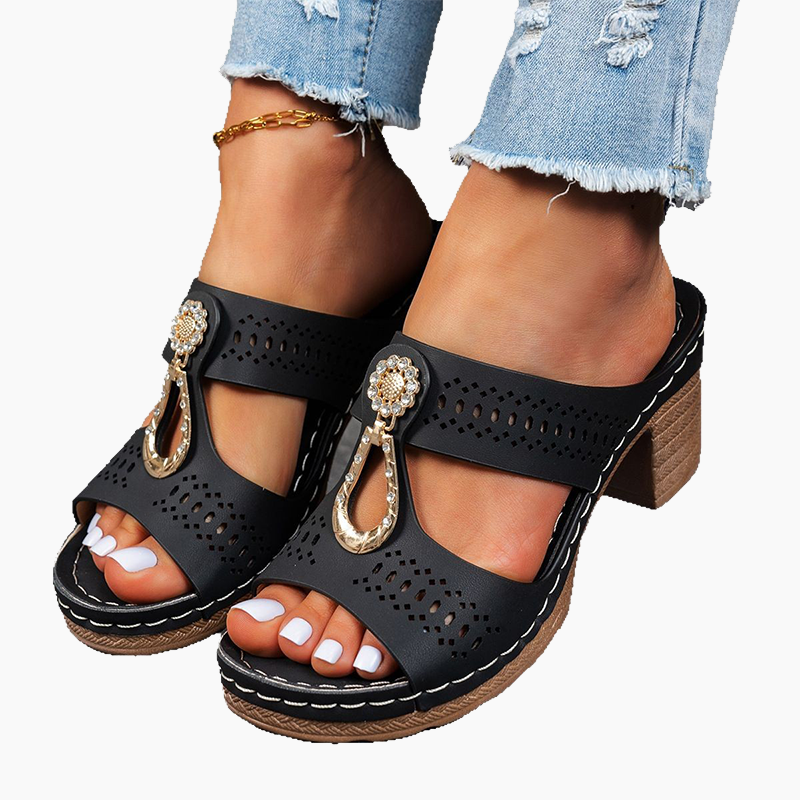 Pantoufles à motif ajouré et talon carré