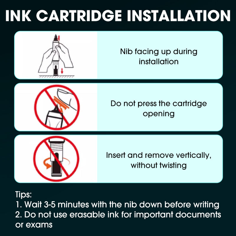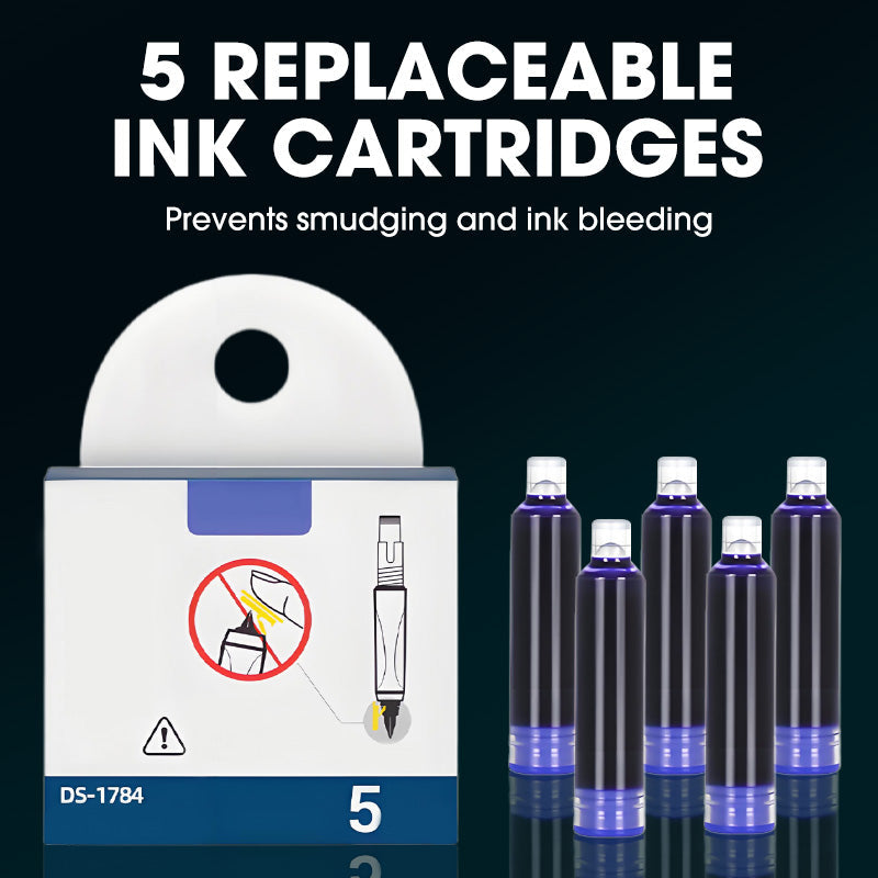 5 CARTOUCHES D’ENCRE REMPLAÇABLES – Livré avec cinq cartouches supplémentaires, permettant une utilisation prolongée sans recharges fréquentes. Idéal pour les étudiants, professionnels et écrivains.