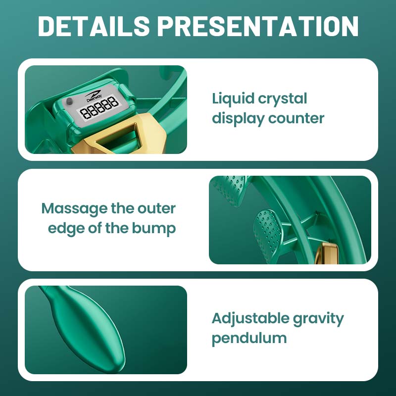 COMPTEUR INTELLIGENT – Un compteur intelligent intégré enregistre vos rotations, vous aidant ainsi à suivre vos progrès et à vous fixer des objectifs. Ce système de comptage silencieux et discret ajoute une touche technologique à votre routine de remise en forme. Associée aux nœuds magnétiques de massage et de vibration, cette fonctionnalité renforce votre motivation et vous permet d'obtenir des résultats mesurables, transformant chaque séance en un entraînement structuré et gratifiant.